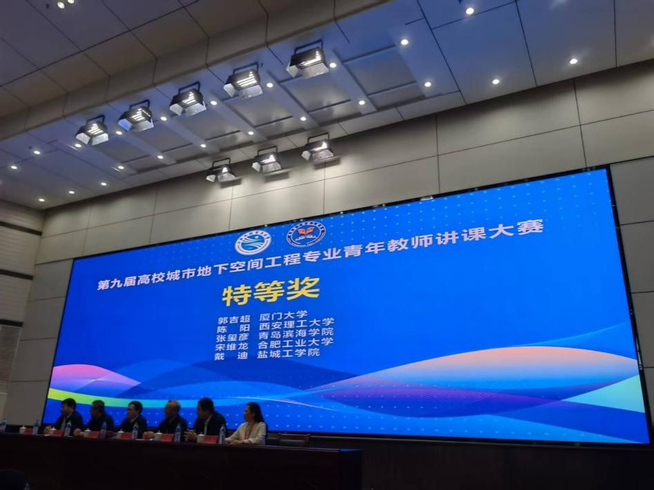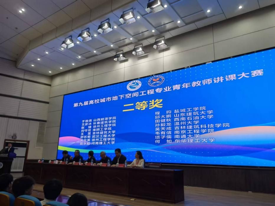 在第九届高校城市地下空间工程专业青年教师讲课大赛中,戴迪博士主讲的“隧道工程”课程荣获大赛特等奖(参赛内容:围岩的基本工程性质),程昀博士主讲的“岩石力学与工程”课程荣获大赛二等奖(参赛内容:单轴压缩下岩石力学试验与变形破坏特征)。