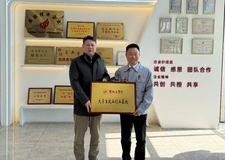 王金山与蔡益新分别代表校企双方签订《就业实习基地合作协议》。未来,学院将选派优秀学生赴企业实习实践,助力学生全面发展。唐浩代表学院向公司授予“伟德国际1949官网大学生就业创业基地”牌匾。仪式结束后,唐浩一行参观了公司生产车间、理化室及办公区域,实地了解企业生产线、质量控制流程及研发环境。