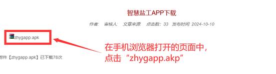 手机浏览器打开下载页面后,点击下方的附件“zhygapp.apk”即可下载,如图3所示。