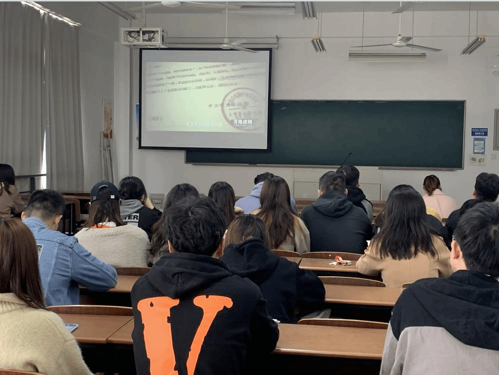 4月15日晚,在北校区知行楼教室,人文学院各团支部集中观看《百炼成钢:中国共产党的100年》纪录片,2020级辅导员与学生一起观看学习。