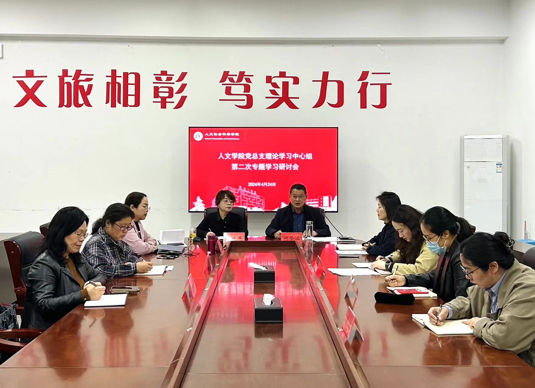 4月24日上午,在仁和楼A304会议室,人文学院党总支理论学习中心组召开2024年春学期第二次专题学习研讨会。会议由学院党总支书记何登溢主持,中心组全体成员参加。