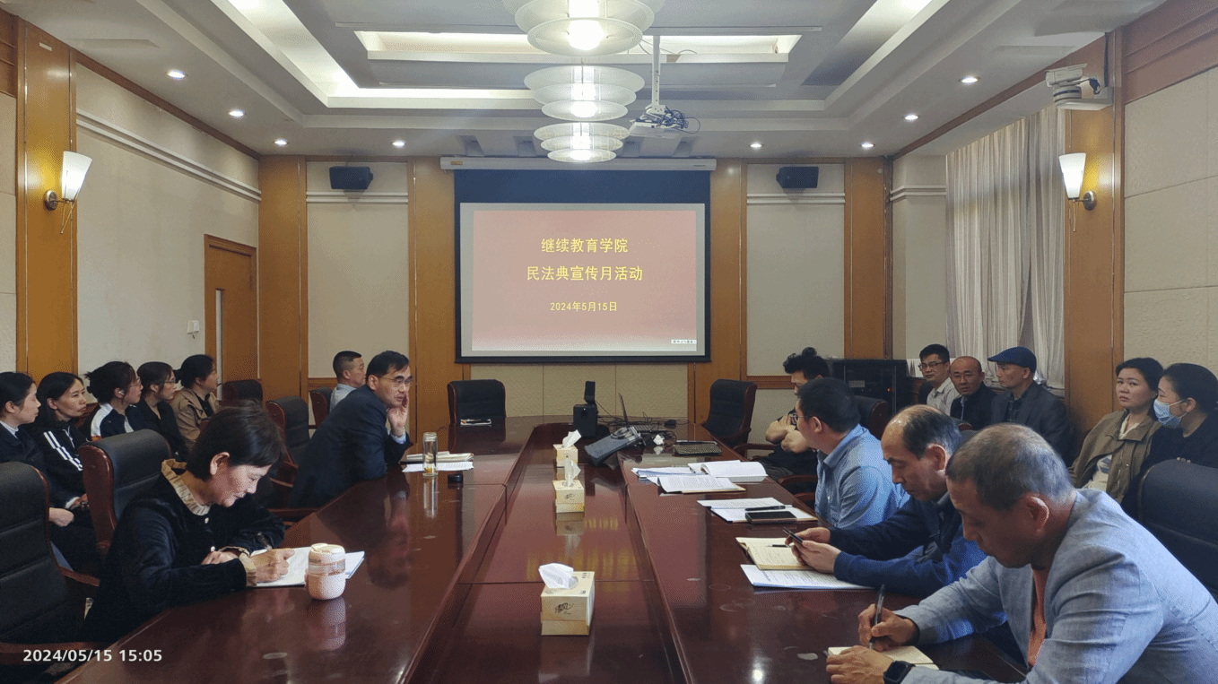 为贯彻落实习近平总书记关于广泛开展民法典工作的重要指示精神,5月15日下午,在北校区图书馆301会议室,继续教育学院开展“第四个民法典宣传月”宣传学习活动,党总支书记、院长陈志华主持,全院教职工参加。
